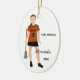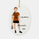 Brünetter Lacrosse-Player in Orange und Schwarz Keramik Ornament