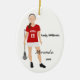 Brünetter Lacrosse-Player, rot und weiß Keramik Ornament