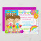 Gründen Sie Ihr Mädchengeburtstags-Party weg vom Recht mit unserem niedlichen hellen und bunten Streik herauf etwas Spaß-Bowlingsgeburtstags-Party Einladungsaufmachung niedliche brünette Doppelmädchen an einem Bowlingsverbündeten mit einem rosa und orange Ballon- und Bowlingsball-Set auf einem niedlichen Polkapunkthintergrund mit Gelbes, Grünes, Türkisblau-, rosa und Orangeflagge. Die Rückseite der Einladung kennzeichnet eine koordinierende lila Farbe. Völlig kundengerecht durch Sie mit Ihren Informationen. ©JW Illustrationen