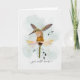 Einfach gut bald Karte mit Kolibri Landung auf einer Blume gezeichnet in einem skizzenhaften Doodle Aquarell-Stil; Imitat Hintergrund scheint eine Kaltpresse Aquarell-Leinwand.