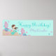 Bruntte Mermaid Birthday Banner Poster
