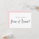 Frag Freunden und Familie, mit dieser femininen und modernen "Werden Sie mein Mann der Ehre?"-Karte zu deiner Hochzeitsfeier beizutragen. Es zeichnet sich durch eine dunkle Holzkohle-Wasserpinsel und eine rosa Rückensteigung aus. Personalisieren Sie die Daten anhand des Namens und der Nachricht des Empfängers.