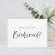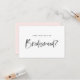 Frag Freunden und Familie, mit dieser femininen und modernen "Werden Sie meine Brautjungfrau?"-Karte zu deiner Hochzeitsfeier beizutragen. Es zeichnet sich durch eine dunkle Holzkohle-Wasserpinsel aus und ist mit einem rosafarbenen Rücken in Rosa verziert. Personalisieren Sie die Daten anhand des Namens und der Nachricht des Empfängers.