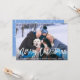 Modern Brush Script Frohe Weihnachtsfamilien Foto-Karte - Blue Snow Back