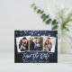 Brush Script Blue Wood Lights Foto Save the Date Postkarte