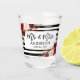 Modern Brush Script, Watercolor Burgundy Marsala Floral mit schwarzen und weißen Streifen Mr. und Mrs. Wedding Shot Glass
