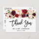 Brush Script Burgundy Floral Wedding Vielen Dank Postkarte