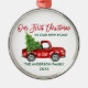 Modern Brush Script Unser erstes Weihnachtsfest in unserem New Zuhause Ornament beinhaltet Watercolor Vintag Red Truck mit Weihnachtsbaum