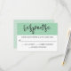 Dieses trendige, fett und stilvoll gestaltete RSVP-Kartendesign mit seinem trendigen, grau/schwarz gepinselten Schriftzeichen überragt einen kontrastgrünen Hintergrund und ein dezent geometrisches Muster auf der Rückseite. Geben Sie das gewünschte Antwortdatum ein, indem Sie den Beispieltext ersetzen. Die Meeresfarbe Grün auf beiden Seiten dieser Einladung kann in der Farbe Ihrer Wahl geändert werden. Einfach anpassen und die gewünschte Farbe aus der Farbauswahl auswählen. Eine andere Version dieser Einladung ist mit weißem Text verfügbar, wenn Sie diese Option bevorzugen.