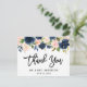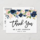 Brush Script Pink Blue Floral Wedding Vielen Dank Postkarte