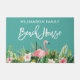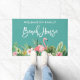 Moderne Pinselschrift, tropische Wasserfarbe mit rosa Flamingo Familienname Beach House Door Mat