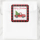 Brush Script Truck Christmas Red Kariert L Quadratischer Aufkleber