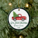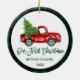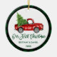 Brush Script Truck Erstes Weihnachtsgrün Kariert Keramik Ornament