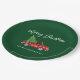 Brush Script Vintag Red Truck Weihnachten Grün Pappteller