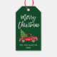 Pinselschrift Wasserfarbe Vintager roter LKW mit Weihnachtsbaumgeschenk-Tag - Grün