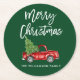 Brush Script Vintag Truck Weihnachtsbaum Grün Runder Pappuntersetzer