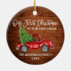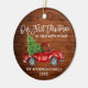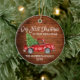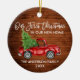 Modern Brush Script Unsere ersten Weihnachten in unserem New Zuhause Ornament beinhaltet Watercolor Vintag Red Truck mit Weihnachtsbaum. Rustikales Landholz.