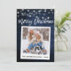 Modernes Pinselskript, Sofortkamera-Stil Foto Frohe Weihnachtskarte - Rustikales blaues Holz