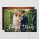Modern Brush Script Liebe und Dank Hochzeit Foto Danke Karte - Rustikales Holz zurück