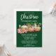Moderne Brush Script Christmas Cookie Exchange Party Einladung Card beinhaltet einen Watercolor Gingerbread Zug mit Süßigkeiten, Keksen und Pinien. Grüner Hintergrund.