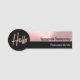 Dieses berufliche Namensschild enthält einen schwarzen Namen auf der Rose der Imitate mit dem Hintergrund aus Gold und auf einem schwarzen Hintergrund den Titel oder den Firmennamen. Hallo in der passenden Rose Goldtext ist im Kreis auf dem verlassen und kann auf Hi geändert oder entfernt werden. Personalisieren Sie die Textfelder oder bearbeiten Sie sie mithilfe des Entwurfstools, um einen von Ihnen bevorzugten Schriftart auszuwählen.