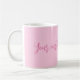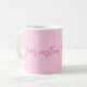 Brustkrebs Bewusstsein Monat leicht rosa feste schlichte Farbe moderne stilvolle mädchenhafte niedliche personalisierte kursive Skript Coffee Tasse. Vollständig anpassbarer rosa Skripttext auf hellrosa schlichtem Hintergrund. Sie können eine persönliche Note schreiben, ein beliebtes Zitat oder eine Phrase, ein inspirierendes Gedicht, etc Großartig als Geschenk, Gunst oder Andenken. Während des Brustkrebs-Aufklärungsmonats im Oktober und während des ganzen Jahres tragen die Menschen rosa Bänder, um Überlebende zu ehren, sich an die durch die Krankheit verlorenen Menschen zu erinnern und um den Fortschritt zu unterstützen, den wir gemeinsam machen, um Brustkrebs zu besiegen.
