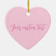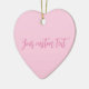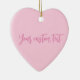 Brustkrebs Bewusstsein Monat leicht rosa feste schlichte Farbe moderne stilvolle mädchenhafte personalisierte Text Herz Keramik Ornament. Vollständig anpassbarer rosa Skripttext auf hellrosa schlichtem Hintergrund. Sie können eine persönliche Note schreiben, ein beliebtes Zitat oder eine Phrase, ein inspirierendes Gedicht, etc Great als Weihnachtsgeschenk, Gunst oder Andenken. Während des Brustkrebs-Aufklärungsmonats im Oktober und während des ganzen Jahres tragen die Menschen rosa Bänder, um Überlebende zu ehren, sich an die durch die Krankheit verlorenen Menschen zu erinnern und um den Fortschritt zu unterstützen, den wir gemeinsam machen, um Brustkrebs zu besiegen.