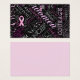 Teilen Sie eine wichtige Botschaft mit diesem eleganten Visitenkartendesign, das ein "Breast Cancer Awareness Word Cloud Design" enthält. Einige der enthaltenen Wörter sind: Hoffnung, Liebe, Glauben, Glaube, Mut, Bewusstsein, Schwester, Mutter, Tochter, Tante, Großmutter, Mächtig, Pink mit rosa Brustkrebs-Bewusstseinsbändern überall. Ideal für Sensibilisierungsveranstaltungen, Spaziergänge, wohltätige Zwecke und jede Gelegenheit, um auf diese Sache aufmerksam zu machen. Wählen Sie eine beliebige Hintergrundfarbe und passen Sie das Design an, indem Sie die Größe des Musters erhöhen oder reduzieren und mit den Pfeiltasten Text und Bänder verschieben, um Ihren Geschmack Anzug. Suchen Sie die ID261, um dieses Muster bei weiteren passenden Produkten zu sehen.