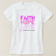 Dieses Shirt wurde zur Sensibilisierung für Brustkrebs entwickelt. Es liest FAITH HOPE LIEBE in fetten Tönen von rosa Buchstaben. und darunter auch Brustkrebs-Kicker mit einem rosa Band.