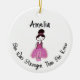 Brustkrebs-Ermutigung personalisierbaren Ornament "Sie war stärker als sie wusste" Sweet aufhetzen Bild mit einem Mädchen, das einen Rock mit rosa Bändern trug