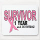 Förderung des Brustkrebs-Bewusstseins und geben Hoffnung für alle Frauen, die noch gegen Brustkrebs kämpfen, indem gelassen wird, dass andere wissen, dass Sie ein 1-jähriger Brustkrebs-Überlebender sind, mit T - Shirt und Geschenken mit Pink Ribbon. Ideal für BREAST CANCER Awareness Month, BREAST CANCER Awareness Walks JEDERZEIT dazwischen! WIE DAS?