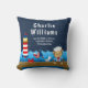 Dieses niedliche und unterhaltsame Kissen verfügt über einen Seemann-Junge-Affen auf einem Holzdeck mit Seemöle und Krabbe. Im Hintergrund befindet sich ein roter und weißer Leuchtturm, ein niedlicher Vogel auf einem Segelboot, Meereswellen und ein marineblauer Sternenhimmel. Der Text verbindet fett- und serifenlose Schriftart für ein stilvolles und modernes Aussehen. Es kann personalisiert sein mit den Geburtsdaten Ihres Babys, wie z.B. Name, Größe, Geburtsdatum und -zeit, oder wenn Sie es als Duschgeschenk geben möchten, können Sie Text bearbeiten und entfernen.