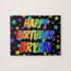Dieses lustige, lebendige, zum Geburtstag gedrehte Puzzle-Design hat die Botschaft "HAPPY BIRTHDAY, BRYAN" mit den Figuren, die ein farbenprächtiges Regenbogenspektrum haben, inspiriertes Farbverlaufsmuster und ein lebendiges Sternenhintergrundmuster. Ein farbenfrohes Rätsel wie dieses könnte verwendet werden, um eine Geburtstagsgrüßbotschaft an jemanden namens Bryan zu senden. [~Z0000468]