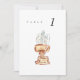 Eine schicke Hochzeitskarte mit einer Aquarellmalerei auf dem Bryant Park Brunnen von New York City. Die Tischnummer ist mit einer eleganten Sitzgarnitur versehen. Die Verbindung der malerischen Aquarellfarbe mit der schicken Typografie sorgt für eine wunderbar unterhaltsame Kombination.
