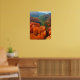 Bryce Canyon Utah Plakat AUS 8.99 . Die Schlucht Bryce ist kein Canyon, sondern ein riesiges natürliches Amphitheater, das durch Erosion an der Ostseite des Paunsaug-Plateaus entstanden ist. Worte verwechseln, wenn es keine Vergleichbarkeit gibt. Eine Höhle ohne Decke? Ein Wald aus Stein? Auch "Canyon" ist irreführend, da Bryce von Gefriertauen und nicht von einem Fluss gesäumt wird. Doch "das größte Pothole der Welt" ist weder angemessen noch schmeichelhaft. Bryce zeichnet sich durch geologische Strukturen aus, die Holodoos genannt werden, die durch Wind, Wasser und Eislaufe des Flusses und des Seebodens aus Sedimentgestein gebildet werden. Die Rot-, Orange- und Weißtöne der Felsen bieten den Besuchern des Parks eine spektakuläre Aussicht. Bryce liegt auf einer viel höheren Höhe als der nahe gelegene Zion Nationalpark. Dieses Wunder der Welt wird zu jeder Jahreszeit jedem Zimmer eine majestätische und tiefe Atmosphäre verleihen