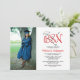 Spaß Typografie BSN Krankenschwester Foto Abschluss Einladung mit Platz für zwei Veranstaltungen. Große rote BSN mit Krankenpflegemütze (mit Abschluss Jahr), Stethoskop und Spritzenkunst mit Platz für ein Pflegeangebot auf der Rückseite. Ein vertikales Foto würde am besten mit diesem Layout funktionieren. Andere Farben sind in unserer Abschluss Kollektion erhältlich. Wenden Sie sich an den Designer, um benutzerdefinierte Farben anzufordern.
