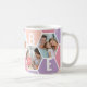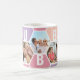 Honigwabenkaffee-Tasse, personalisiert mit 5 Ihrer Lieblings-Fotos und gedruckt mit einem 5-Buchstaben-Namen, wie z.B. BUBBE. Das Design besticht durch eine Collage aus Wabenkolben in einer sommerlichen Sorbet-Farbpalette aus lila Rosa und Pfirsich. Wenn Sie gewollt haben, die Farben zu ändern, klicken Sie auf "Weiter anpassen" und klicken Sie auf jedes Hexagon, das Sie gewollt haben, um zu ändern.