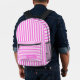 Bubblegum Rosa und Weiß Vintag Streifen Personalisierter Name Druck Rucksack