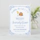 Elegant “Bubbles, Brunch & I Do” bridal shower invitation featuring a blue vintage border, watercolor mimosa and waffle stack, and classic script fonts. Personalize with your shower details for a chic brunch celebration at your favorite cafe, restaurant, or at home.