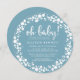 Feiern Sie ein neues Baby unterwegs mit unseren rund mit Blasen umsäumten Einladungen in Blau und Weiß. Das Design bietet "oh baby!" in weißem handgeschriebenem Skripttext mit Ihren Veranstaltungsdetails unten.