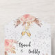 Weiße, mit rosa Blumen geschmückte Kulisse, Pampasgras, Flöten und Blubbles für einen Brunch, Brautparty. . Personalisieren und fügen Sie einen Namen und die Details. Schwarze Buchstaben.