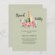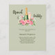 Ein modernes, stilvolles und glamouröses Brautparty für einen Bubbly Brunch. Weiß grüner Hintergrund mit rosafarbenen Rosen, Schaumwein und Flöte. Personalisieren Sie Ihre Party-Daten und fügen Sie sie hinzu. 1 Blatt = 1 Einladung mit Druckkante bis Kante.