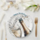 Ein wunderschön illustriertes Bild einer Champagnerflasche, die in ein Kristallglas gegossen wird. Der Champagner ist bläserig und die Glitzern im Licht, mit Tröpfchen von Flüssigkeit, die herumschwirren, schaffen eine dynamische und fröhliche Atmosphäre.