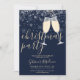 Eine elegante Weihnachtsfeier mit Champagnergläsern, Schneeflocken und dem Namen des Schriftzeichens. Diese stilvolle Einladung kann mit Ihren Informationen in schicken Schriften auf winterblauem Hintergrund personalisiert werden. Entwickelt von Thisisnotme©
