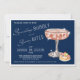Extravagante Happy Hour-Einladung, die einfach mit Ihren Angaben aktualisiert werden kann. Freuen Sie sich auf ein "funkelndes" Glas Sekt mit einer köstlichen Leckerei. Der schöne Schriftart liest "Sparkling Bubbly and Savory Bites" in der Mitte, alle auf einem dunkelblauen Hintergrund platziert, um es "Pop" zu machen. Die Rückseite ist ein komplementäres, weiß-champagnerfarbenes Design.