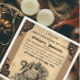 Eine Seite aus einem Buch über giftige Lebensmittel aus dem Jahr 1820. Ein einzigartiges Vintage-Bild mit einem Schädel und Schlange auf einem Topf, der "Tod im Topf" liest. Design ist in den Farben Pergament braun und schwarz.
