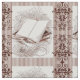 Ideal für jedes mögliches Projekt für den Genuss der Buchliebhaber, dieses Muster kennzeichnet ein Bild einer gehüteten Sammlung des Sets der alten Bücher auf einem Medium Tan-Button-Streifenhintergrund, der mit viktorianischen Äradamastelementen verschönert wird.