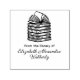 Offenes Buch auf Buchstapel "Von der Bibliothek" Buchname Design ========= Dies kann leicht geändert werden, um zu sagen: "Dieses Buch gehört zu", "Ex Libris", "Vom Schreibtisch aus", "vom Büro von" oder anderen Text Ihrer Wahl.
