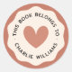 Rundaufkleber mit Terrakotta-braunem Herz, umgeben von dem Buchzeichen "zu dem dieses Buch gehört" und Ihrem Namen mit Terrakotta, welliger Rand.