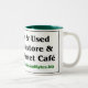 Diese Tasse kennzeichnet das Logo, die kurze Beschreibung und die Netzadresse der Bücher u. der Byte-Buchhandlung in im Stadtzentrum gelegenem Quincy, Florida.